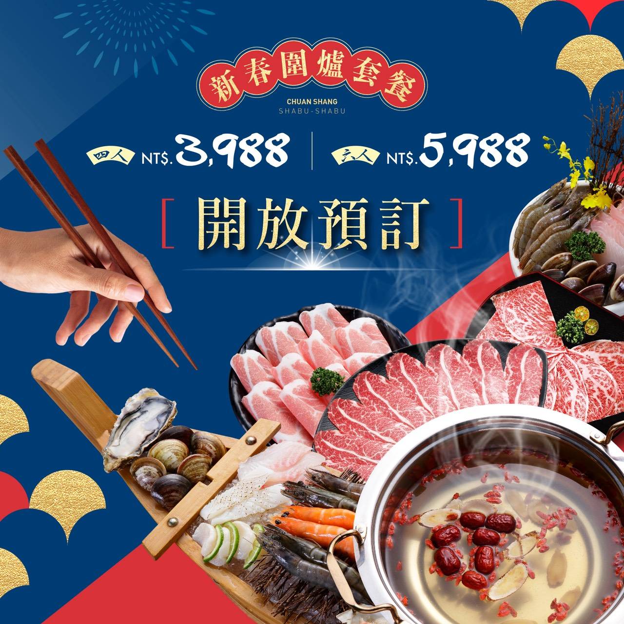 除夕圍爐在川上 開放預訂 2026/02/16 (週一) 四人和牛龍蝦套餐3988*10% 六人和牛龍蝦套餐5888*10% 有龍蝦,有和牛,有海鮮船,有霸王肉, 新增小農蔬食吧吃到飽! 歡迎電話預約:035248935 地址:新竹市中正路157巷13號